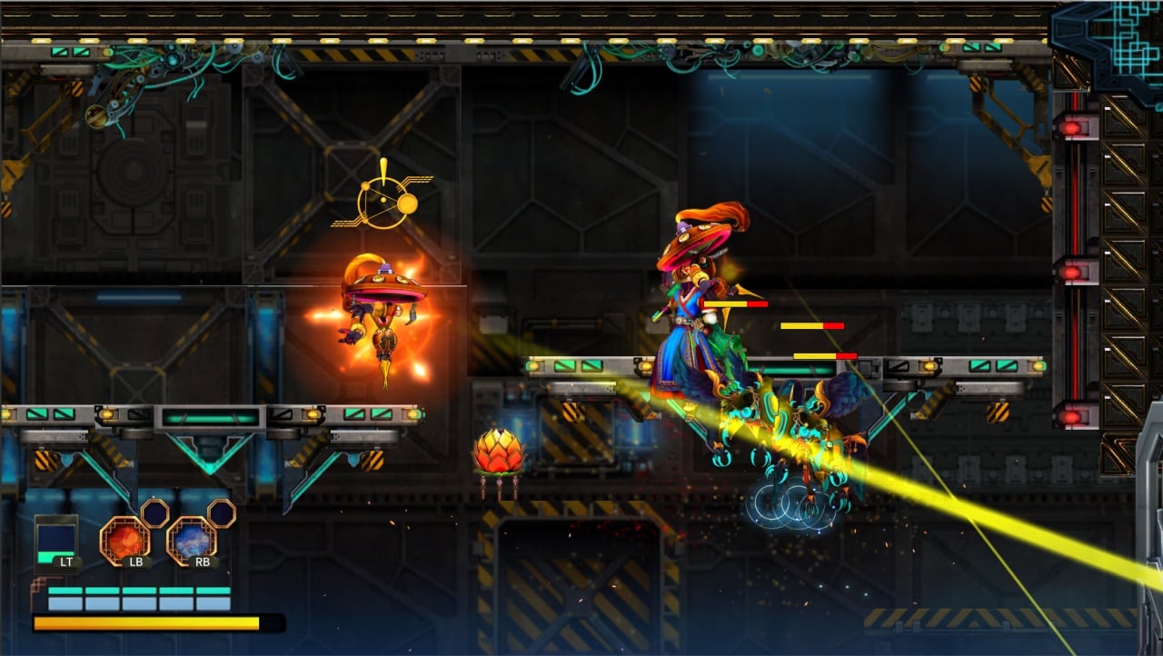Бонусное оружие будет левитировать над персонажем и включает в себя 4 разновидности снарядов: электричество, огонь, лед и обычные пули. Визуальное исполнение выполнено в ярких красках и включает в себя разнообразные локации, представлены индивидуальной краской и стилистикой.