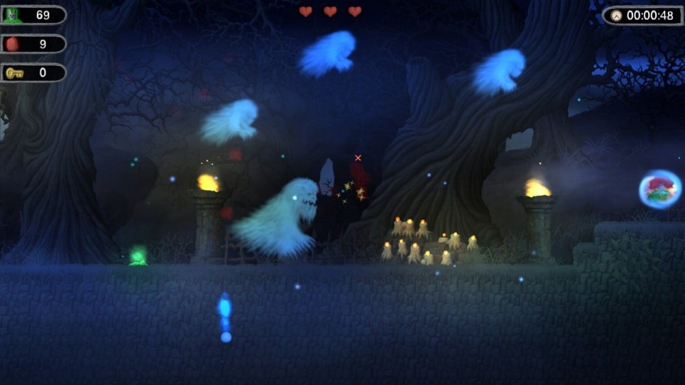 Похожий на ожившее дерево персонаж очищает гору Атронаст и её окрестности от ядовитых веществ. Он собирает разбросанную по земле токсичную жижу, уклоняется от расставленных повсюду ловушек, ищет ключи в секретных местах и убегает от чудовищ-преследователей. Часть монстров можно убить, если прыгнуть им на головы (или использовать их вместо батута в других случаях). Протагонист гибнет при потере трех сердец, а затем возрождается в самом начале этапа или на ближайшей контрольной точке.