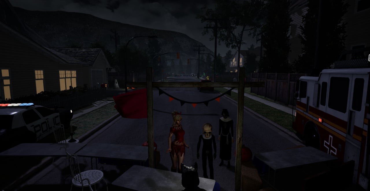 Sinister Halloween – хоррор экшен, в котором вы переместитесь в ночь Хэллоуина в горах где-то в Северной Канаде. Вам известно лишь то, что вы идете на фестиваль ужасов. Гуляйте со своими друзьями, дарите угощение и зайдите в страшный дом с привидениями на большую вечеринку. Все было весело до того, как праздник загробной жизни не принесет нечто устрашающее.