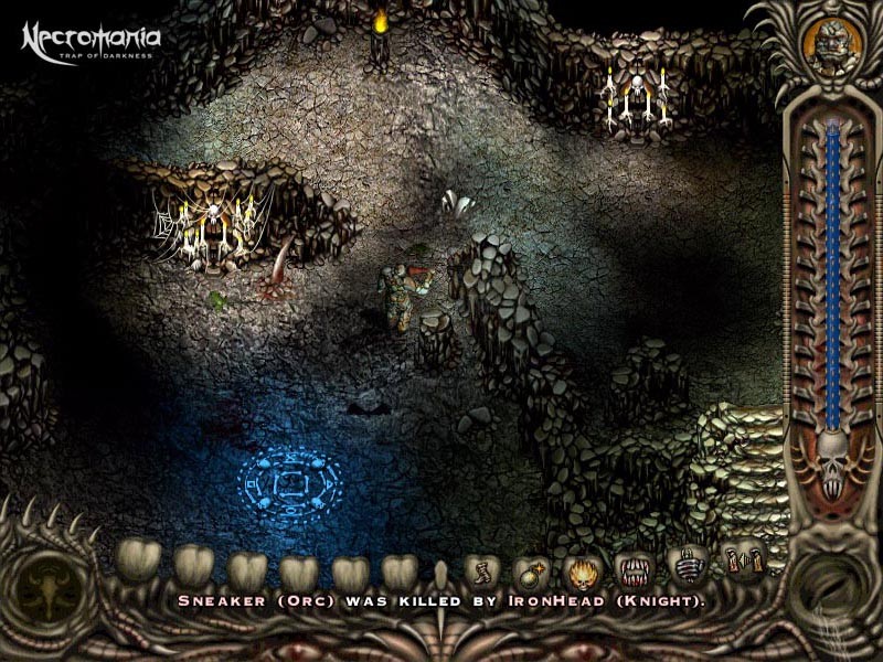 Некромания: Сила Тьмы – это аркадный экшен с видом сверху и ролевыми элементами. Проект выполнен в сеттинге темного фэнтези. Тайтл рассчитан в первую очередь на сетевую игру. Однако одиночная кампания в нём тоже есть. Она представляет собой набор матчей с ботами и 3 уровнями сложности. Объединенные общим сюжетом этапы поделены на 4 биома.