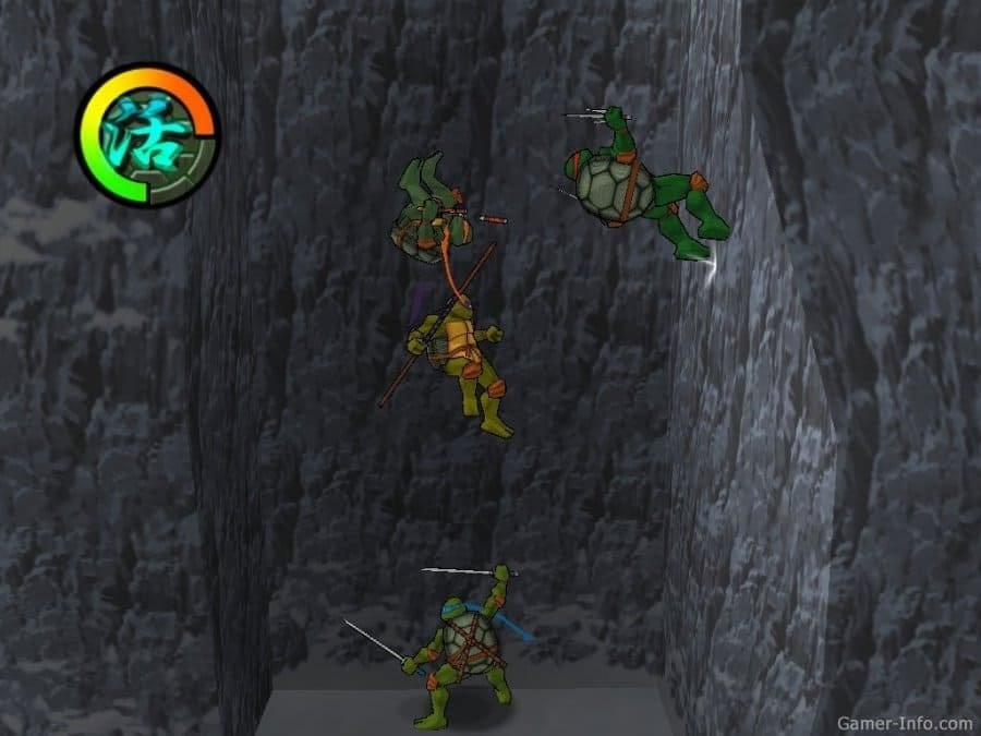 Внутри этой части, в отличие от предыдущей, есть кооперативный режим для четырех игроков. Игрок сможет выбрать черепашку по цвету и воспользоваться его базовыми навыками для того, чтобы уничтожать врагов быстрее! Если вы играете в одиночку, то сможете взять двух черепашек для управления, но это будет непросто.