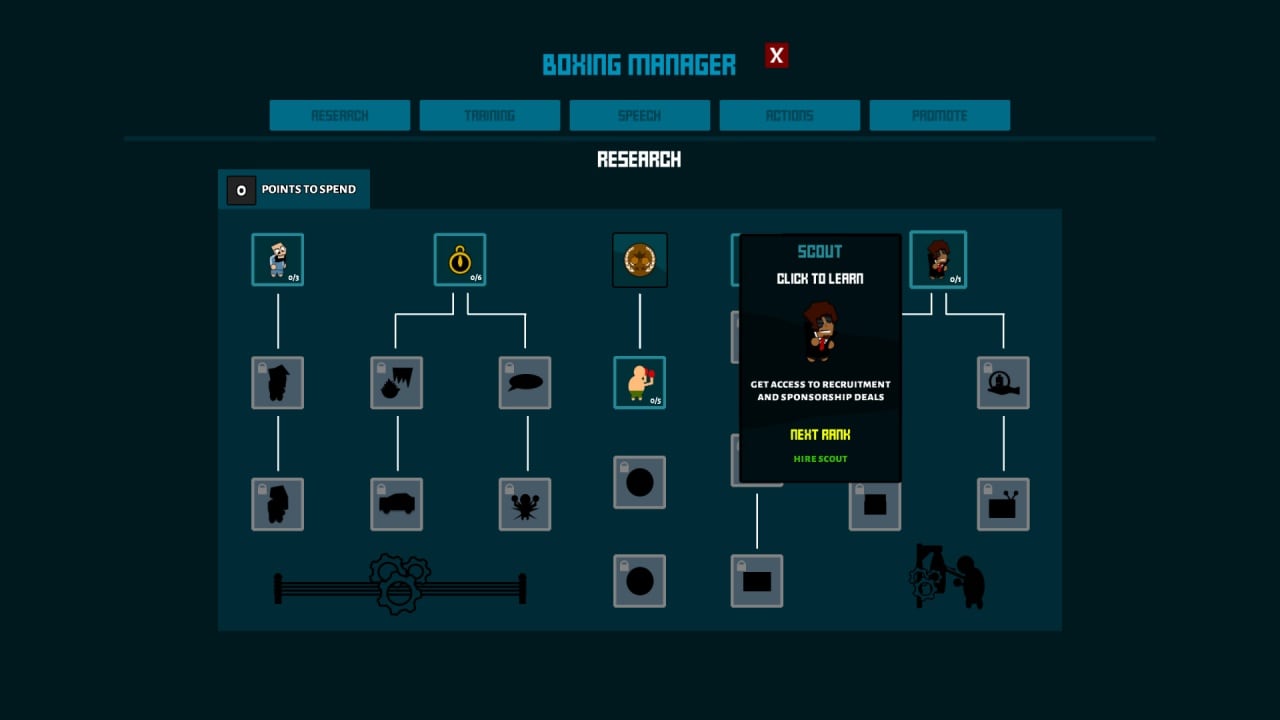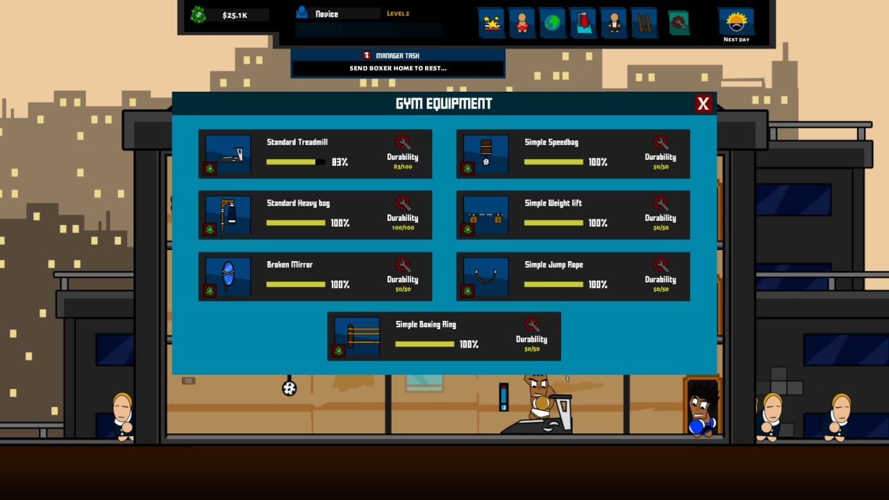 На дворе 80-е, вы попадаете в пустую школу по боксу, которую предстоит развивать: покупать новые тренажеры, приглашая именитых спортсменов и устраивать бои, чтобы зарабатывать деньги на рекламе и прокачивать свой зал. Помимо менеджмента, игрок будет тренировать своих подопечных, обучая всем навыкам и знаниям, чтобы они получили возможность добиться успеха и построить карьеру в профессиональном боксе. Каждый боксер будет иметь уникальные боевые стили и навыки, которые определять предстоит вам, затачивая бойца под скорость, агрессию или медленный стиль боя, но нанесением огромного урона.