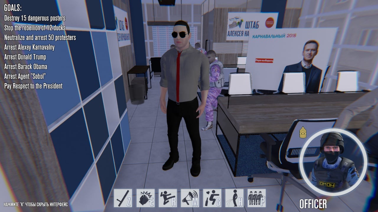 Некоторые миссии будут заключаться в том, чтобы отыскать секретного агента Соболь или захватить Обаму, которого разработчики учтиво поставили с обезьяной. В зависимости от стиля прохождения, могут содержаться сцены насилия или присутствовать ненормативная лексика. Одна из геймплейных особенностей заключается в том, что можно раздеть митингующих девушек.