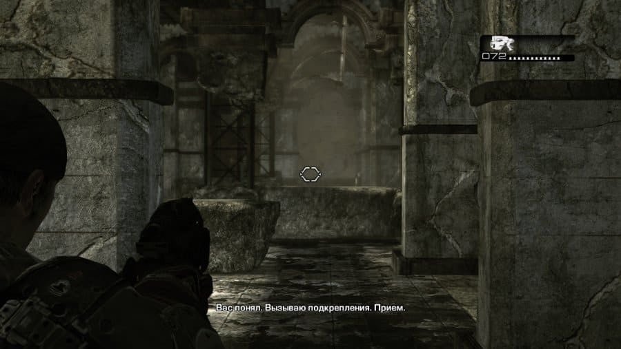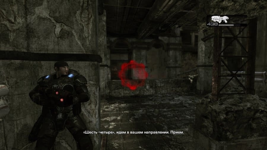 Маркус в борьбе с пришельцами использует оружие под названием “Лансер” - винтовка, имеющая цепную пилу на своем корпусе, которую можно применять в ближнем бою. Индикатор “Crimson Omen” выступает в роли сигнала тревоги, означающий, что игроку нужно срочно найти укрытие и переждать некоторое время, чтобы здоровье вновь восполнилось.