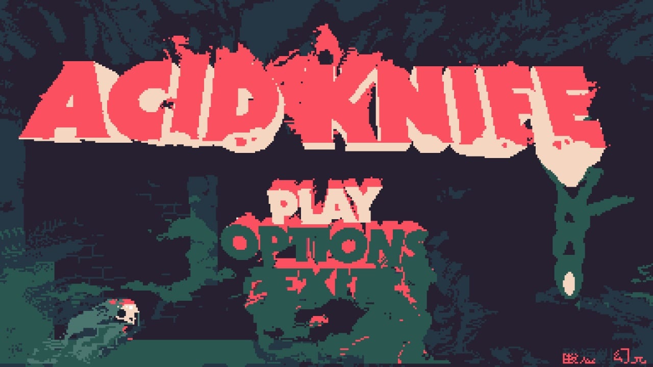 В Acid Knife психоделический антураж. Это выражается в самой пиксельной графике и эффектах размытия. Игра использует минимальное количество цветов: белый, серый, зелёный и красный. Некоторые звуки (например, выстрелы), отображаются ещё в виде текстов, как в комиксах.