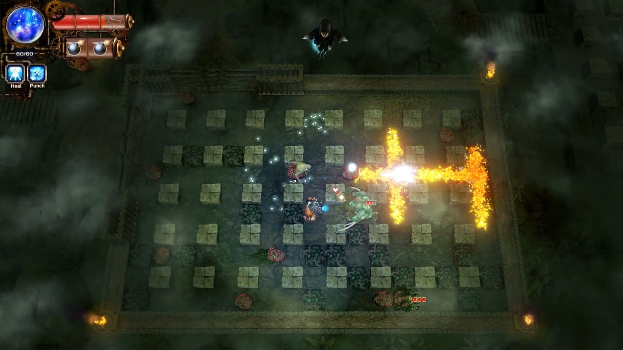 Игра основывается на классической механике бомбермена - вы сражаетесь на размеченной площадке, ставите бомбы, а они взрываются в четырёх направлениях. Вам нужно стратегически мыслить и понимать, где нужно установить бомбы, чтобы нанести врагам урон, но уцелеть самому.