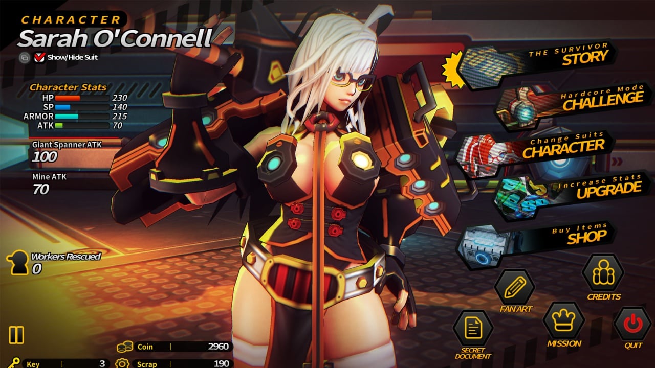 Костюм главной героини помогает справляться с постоянными битвами, а оружие – гаечный ключ, отлично подходит для уничтожения оппонентов. За убийства Вы получаете монеты и части металла, с помощью которых производится улучшение характеристик героя, оружия и его костюма.