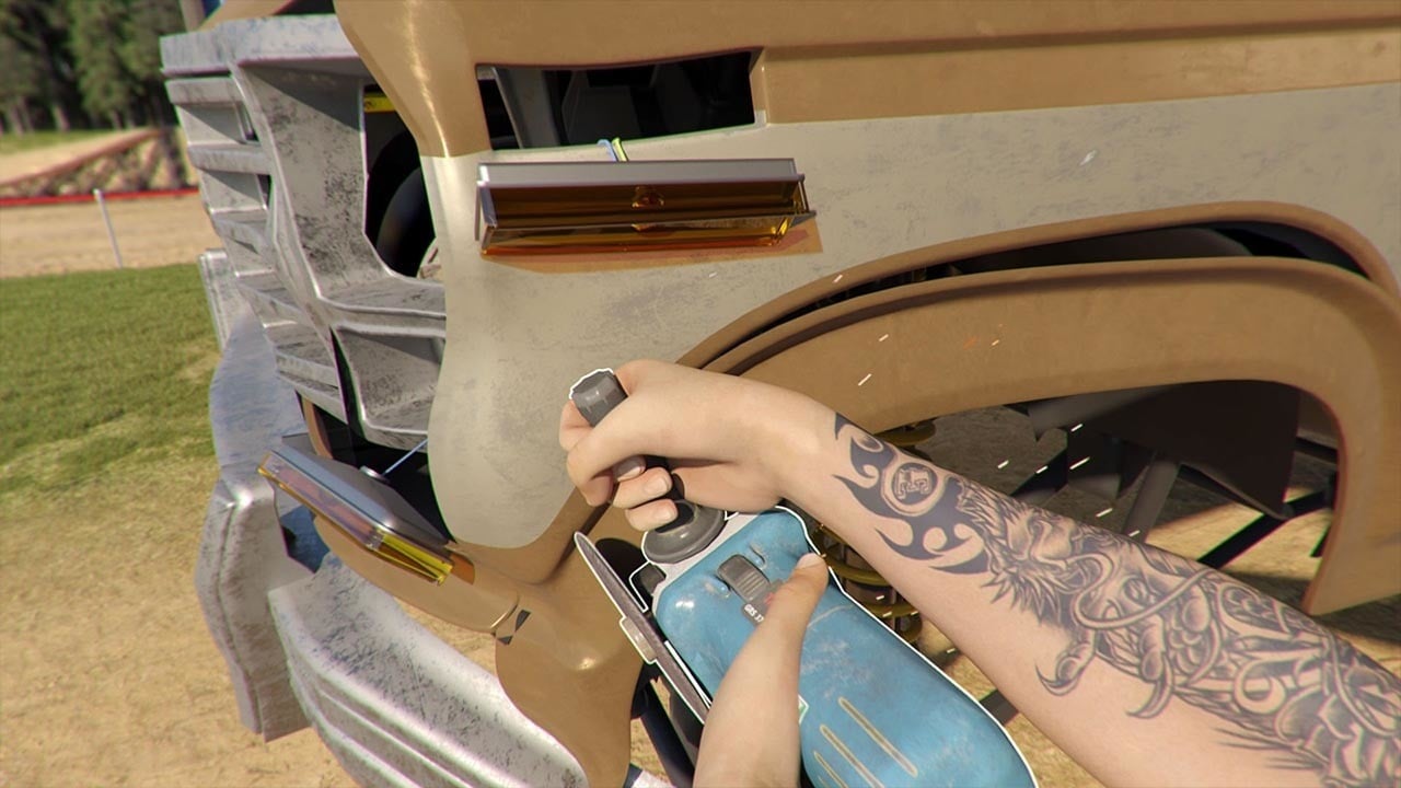 В Redneck Party свою тачку разрешают апгрейдить и чинить. Этот процесс реализован от первого лица. Игрокам даже красить кузов придется вручную, нанося на него жидкость через распылитель. А если захочется поменять крыло, то потребуется самостоятельно снять старую деталь и поставить вместо неё новую запчасть. И при этом нужно будет не забыть закрутить все ранее открученные шурупы и болты.