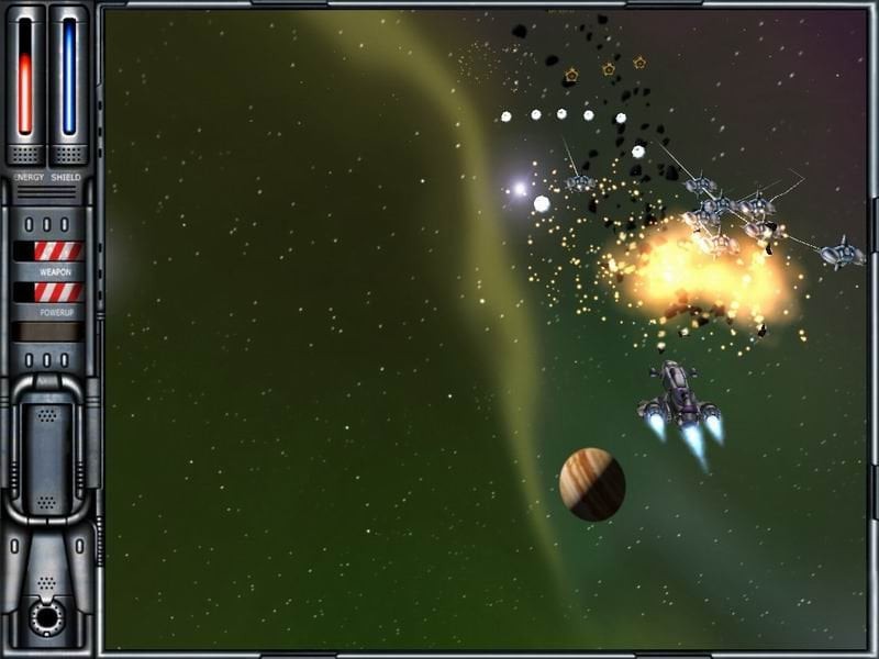 Путешествуйте между планетами, исследуя просторы галактики. На каждом этапе появляется новый тип противника. Все враги имеют свои особенности и характеристики. С последующими этапами вражеских кораблей становится больше и вам потребуется действовать быстрее, уходя от линии атаки инопланетных посудин и уворачиваясь от их мощных снарядов.