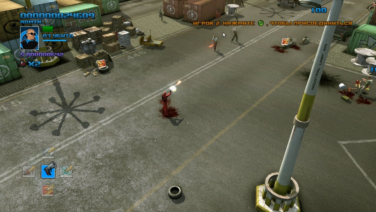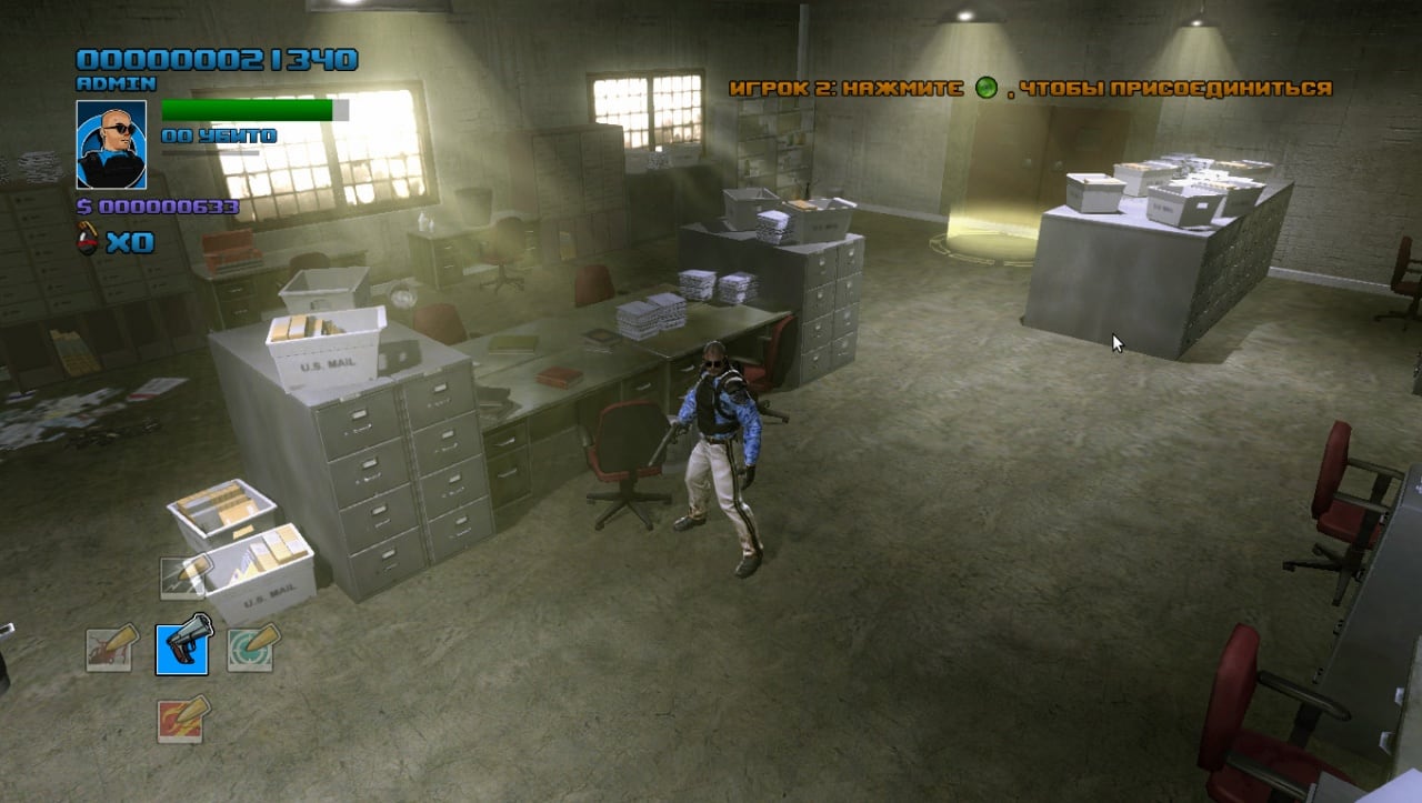 После основного прохождения юзер может использовать кооперативный режим и пригласить в банду из двух человек друга. Отличаются они только цветом рубашки и боевыми навыками, поэтому в таком режиме разносить головы можно вдвоем. Чтобы запасы патронов и здоровья не заканчивались так быстро, нужно попутно собирать аптечки и «раздевать» вражеские трупы, снимая с них нужное геймеру оружие.