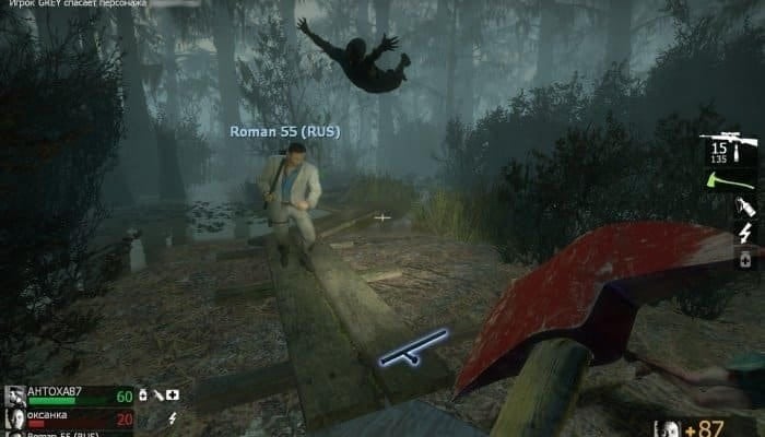 - Охотник не имеет значимых телесных повреждений, обладает большой скоростью бега, маневренный и ловкий. Отталкивается от стен и атакует людей, сбивая их с ног.