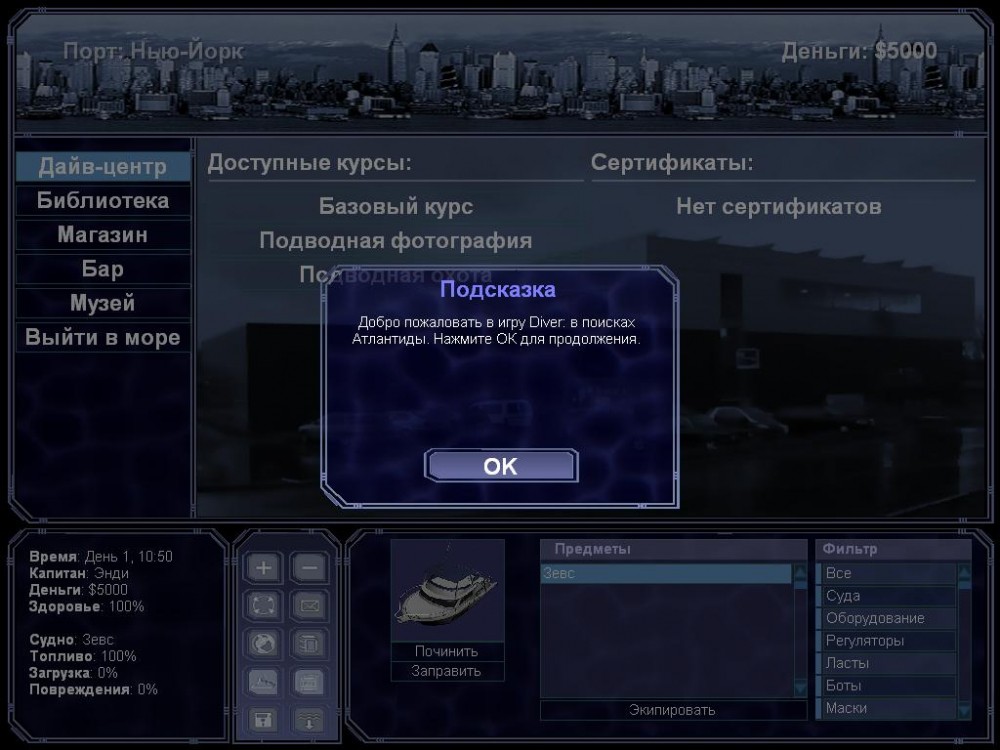 Игра Дайвер: В поисках Атлантиды переносит пользователей в красоты подводного мира. Таинственные локации таят в себе смертельную опасность и мучительную смерть. Главный герой – Дайвер, решивший осмелиться и испытать собственные способности, сразившись со стихией океана. Он спускается в опасное место, чтобы добраться до утраченной цивилизации Атлантиды. Если у него получится выполнить миссию, то он доберется до несметных сокровищ затонувшего государства.