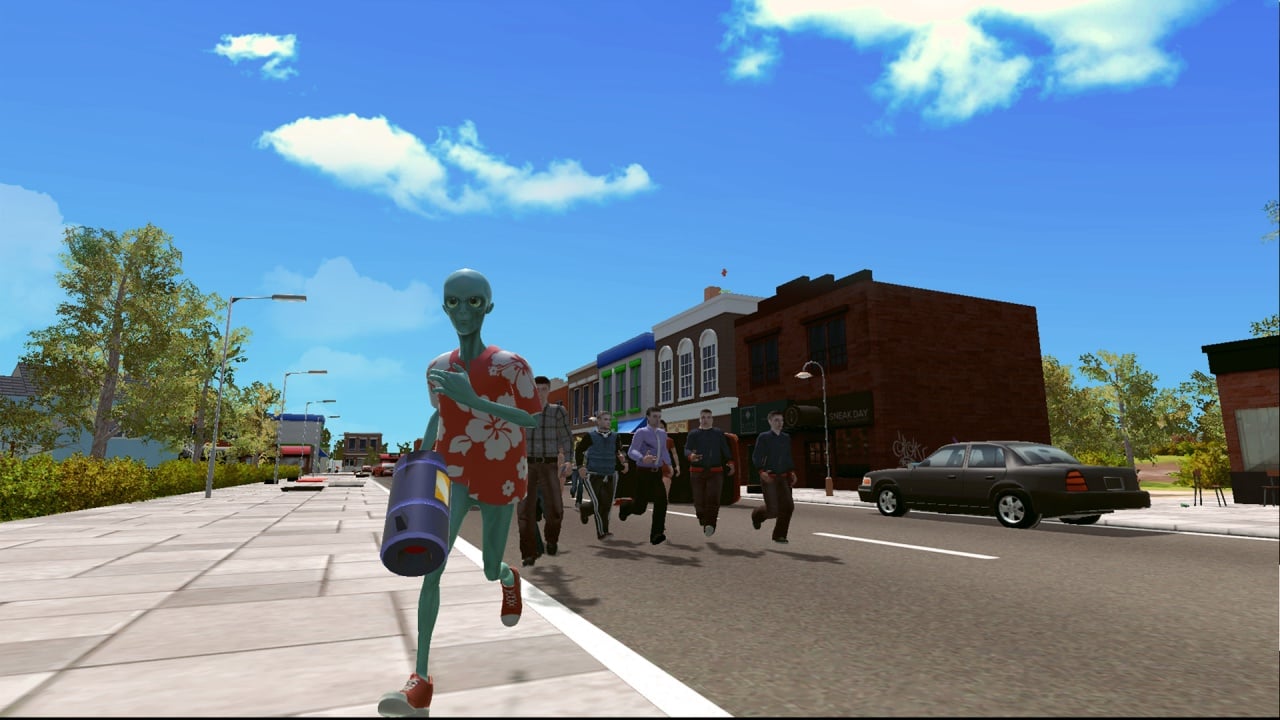 Alien Mayhem - песочница в открытом мире, где предстоит управлять инопланетянином, который обожает шутки и предпочитает нести хаос в окружающем мире. Игровой процесс тесно завязан на физике, реалистично моделируя разрушения и движение объектов. Разрушайте здания, терроризируйте обычных жителей и покажите всем, что такое настоящий инопланетный юмор!