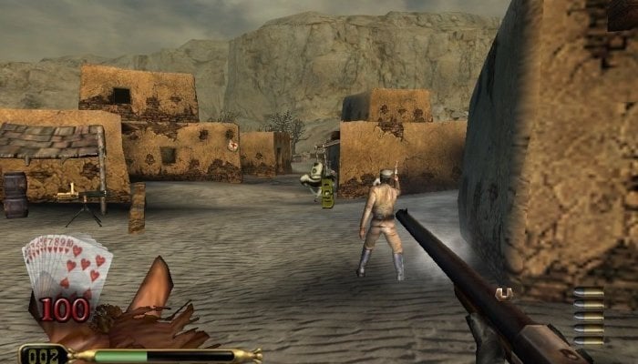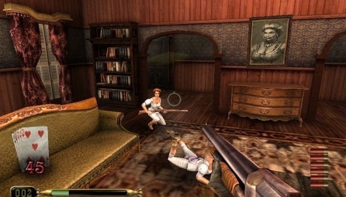 За удачные выстрелы персонажу начисляются очки. К примеру, если попасть врагу в шляпу, а потом уже в голову, то можно получить 30 очков, меткое попадание в глаз принесет 15 points, уже меньшее число очков начисляется за попадание в бутылки, вывески или приколоченные колеса. Главное достоинство экшена - это нелинейные события и действия. Противника можно победить любым доступным способом: расстрелять, выстрелить в основу конструкции, под которой тот находится, подорвать ближайшие бочки с порохом, сбросить с крыши. За такое убийство недруга даются бонусы. Заработанные баллы заполняют датчик на экране, благодаря которому открываются особые функции орудия - скорострельность и ударная сила. Вначале каждого левела можно принять предложение поиграть в покер, чтобы пополнить этот датчик и получить патроны.