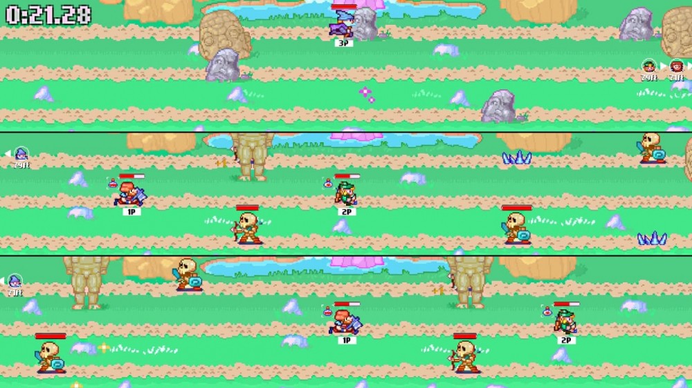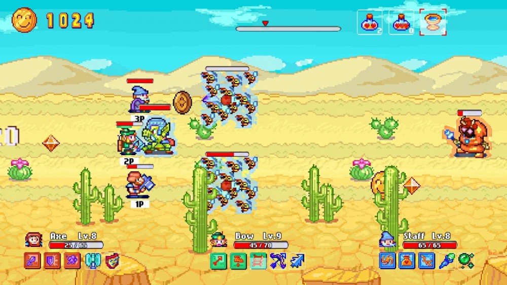Axe, Bow & Staff – это атмосферное приключение в вымышленном мире, где приходиться отправиться в долгое и опасное путешествие. Пользователь получает возможность погрузиться в игру, совмещающую ролевые механики и пиксельную механику скролера. Отправиться в путь можно вместе с другими игроками в многопользовательском режиме, совмещая способности и силы разных персонажей вместе, комбинируя умения и усиливая доступные возможности.