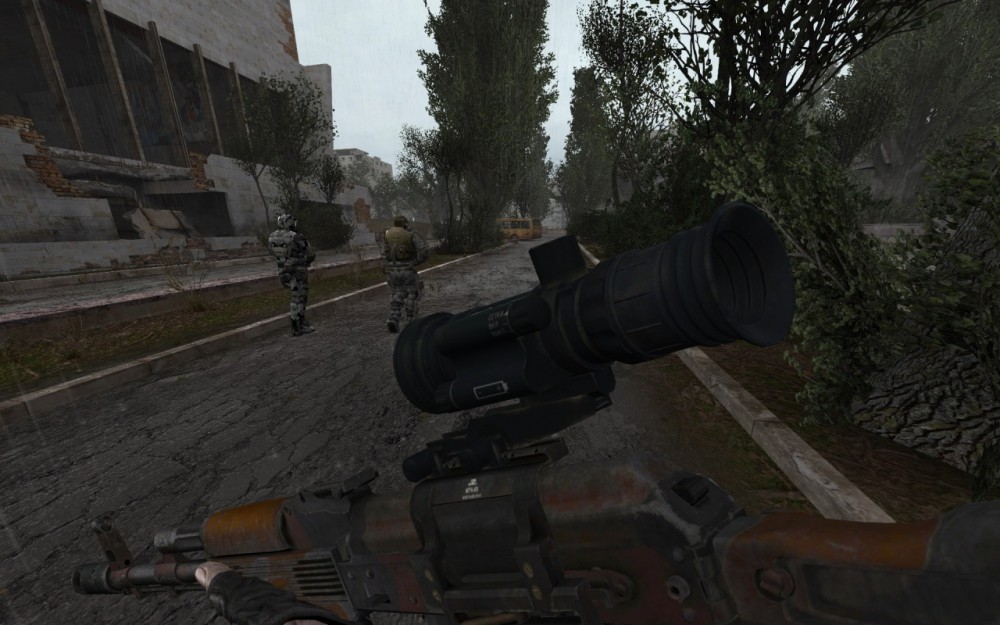 Stalker: Call of Pripyat - Desolation можно назвать оружейным аддоном. Он добавляет ко всему вышеперечисленному возможность детально развлекаться со стволами. Можно навешивать на них различные прицелы и прочие обвесы, менять магазины и всё в таком духе. Это стало возможным благодаря системе взаимозаменяемых модулей. При установке оптики или другого аттачмента можно выбирать планку, на которой этот предмет будет держаться. Также тут позволяют настраивать само место. Апгрейд может быть установлен близко к пользователю, подальше от него или по центру.
