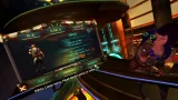 Shufflepuck Cantina Deluxe – это аэрохоккей с видом от первого лица. Правила тут практические такие же, как и в настоящей спортивной игре. Есть стол с гладкой поверхностью, два участника со специальными битами, что стоят с противоположных концов, и шайба. Её необходимо загнать в ворота соперника.
