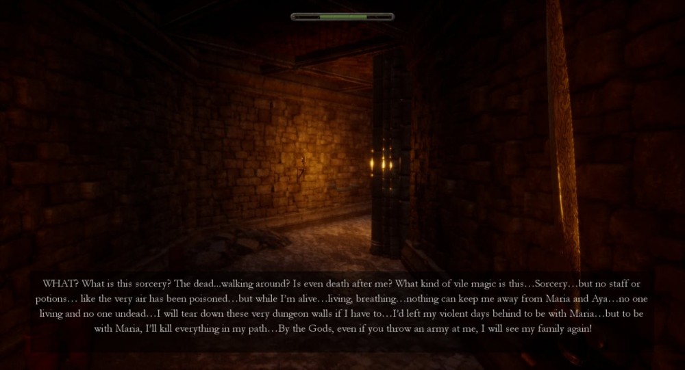 Герой находит в катакомбах 4 типа оружия. Это меч, кинжал, булава и дубина. Они различаются между собой наносимым уроном и скоростью атаки. Также можно подбирать кости и сражаться ими. В бою есть возможность уклоняться от вражеских ударов. Увороты и бег расходуют шкалу выносливости. В обычном режиме потерявший воспоминания мужчина передвигается очень медленно. Это короткая игра, которая проходится за час-полтора. В ней всего одна разновидность противников. Игровой прогресс в ней сохраняется автоматически.