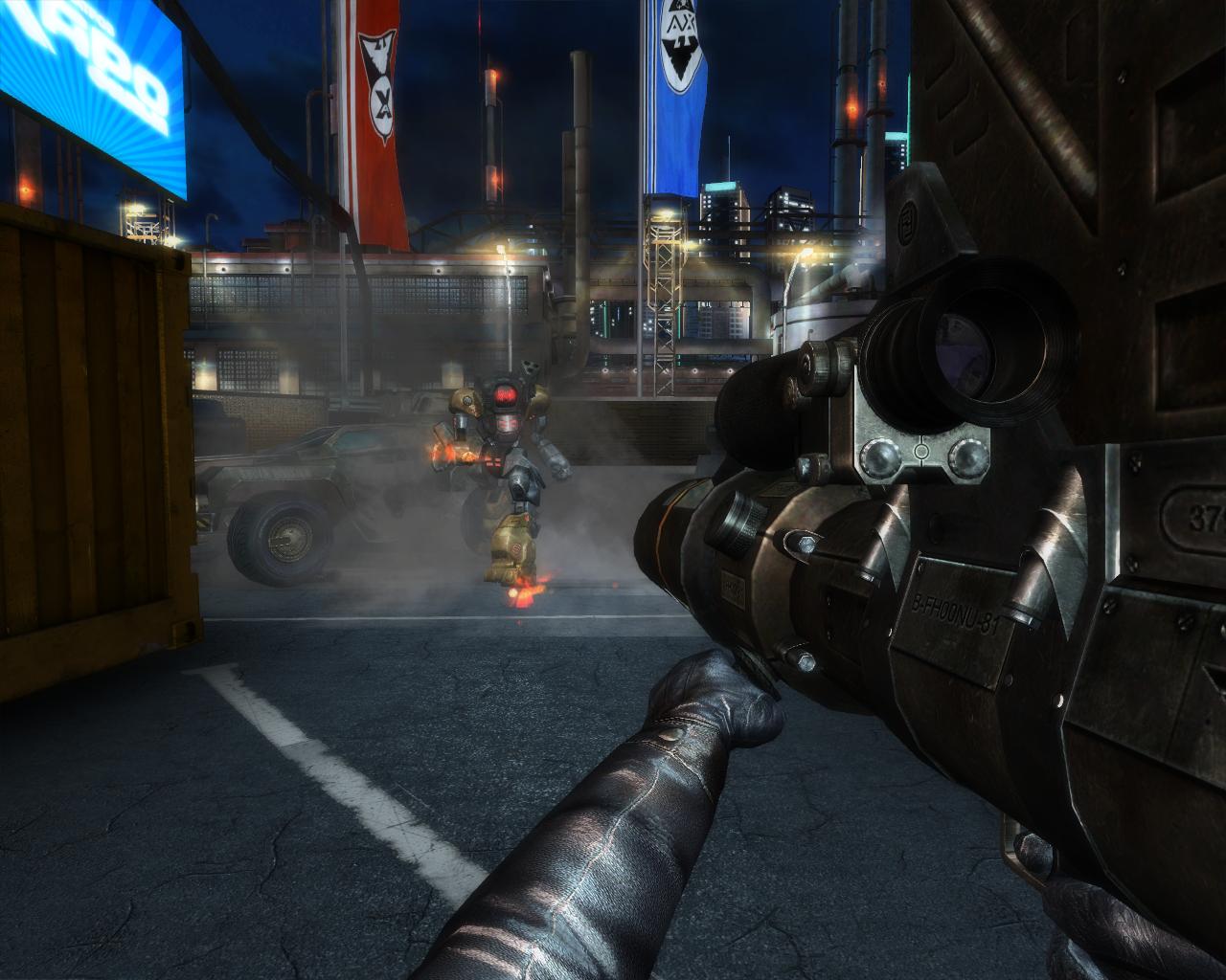 Вооружение здесь довольно обширное. Герой может держать и стрелять сразу при помощи 2 пистолетов-пулеметов, пользоваться высокотехнологичными автоматами или лазерными пушками. Помимо оружия, имеется возможность сесть в бронированную тачку, окруженную энергетическим щитом, чтобы прорваться в самые скрытые точки Корпорации.