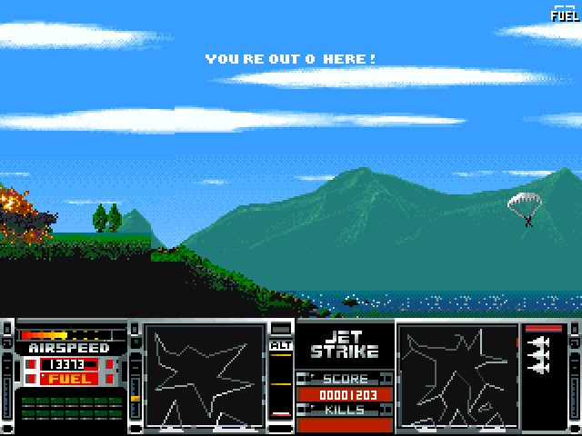 Воздушное судно можно разбить, если врезаться в какое-нибудь препятствие или поймать вражеский снаряд. Дополнительные жизни в Jetstrike реализованы нетипичным способом. Перед уничтожением транспортного средства пилот катапультируется. А затем он получает новый истребитель или самолет. Количество попыток ограничено, что в самой игре объясняется высокой стоимостью техники. Если потерять все летательные аппараты, то героя отправят доучиваться в летное училище.