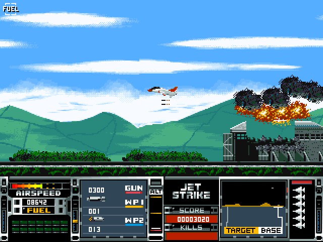 Jetstrike – это горизонтальный скролл-шутер. В нём дают летать на различных вертолетах и самолетах. Эти типы авиации ощущаются по-разному. А система управления винтокрылыми машинами может потребовать некоторого времени на привыкание. Смысл игры заключается в выполнении миссий. Задания проходят по всему земного шару в дневное и ночное время суток. И в них чаще всего просят уничтожить вражеский объект и сразиться с силами противника. Перед началом операции можно послушать брифинг, где не только опишут текущую ситуацию, но и подскажут наиболее оптимальный маршрут до цели.