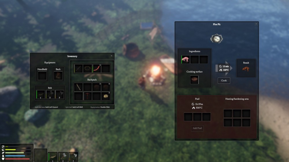 Разработчики сделали ставку на реализм. Страдающий от голода и жажды герой может переносить на себе одновременно только несколько вещей. Он вынужден кипятить воду и готовить еду перед употреблением. И этот процесс происходит не быстро. Жидкость при этом нужно хранить в мисках и других емкостях. Если её неаккуратно перевозить, то она может вылиться из посуды. Рубка деревьев и другие активности тратят запас сил. Его надо восстанавливать с помощью отдыха и сна. Ещё здесь необходимо сражаться с дикими животными и защищаться от неблагоприятных погодных условий. Присутствует возможность крафтить предметы, а также заниматься строительством. Здесь есть множество видов сырья. Эти материалы тоже нуждаются в первичной обработке.
