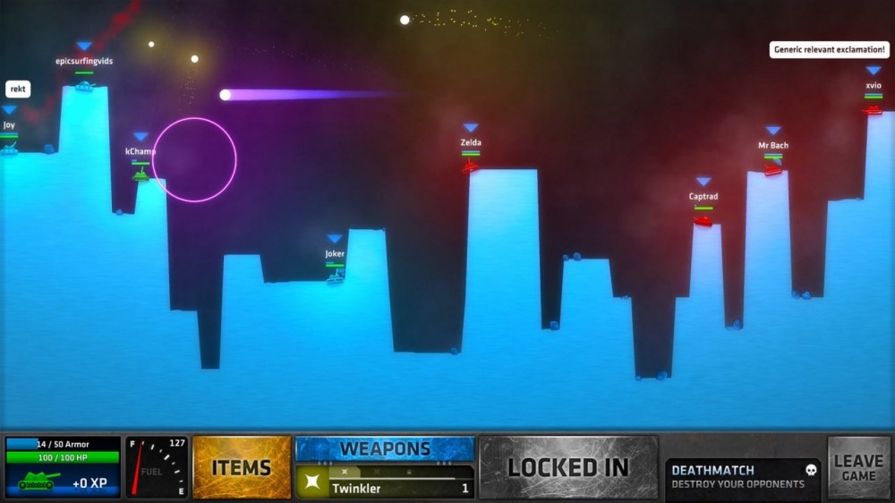 Геймплей покажется знакомым тем, кто рубился в игры серии Worms. Мультиплеер поддерживает до 8 участников. Каждый управляет своим танком и ходит по очереди. Для уничтожения соперников нужно выпускать в них различные снаряды. На их полет по параболе влияет сила и направление ветра. Бои проходят на процедурно-генерируемых картах. Окружение тут полностью разрушаемое. Есть разные скины для бронетехники и различные модификаторы, меняющие игровой процесс.