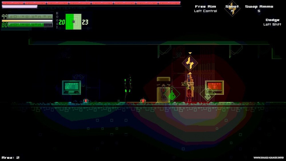 Главный герой перемещается по военно-космической станции. На пути он столкнётся с противниками и боссами, будет прокачивать собственные способности и использовать крутые приемы. Протагонист и враги могут появиться в параллельном измерении и состязаться там. Для перестрелок предоставлено свыше 10 видов вооружения. Пользователь воспользуется автоматическими винтовками, пистолетами-пулеметами или футуристическим огнестрелом. Графика выполнена в пиксельном стиле с простым интерфейсом.