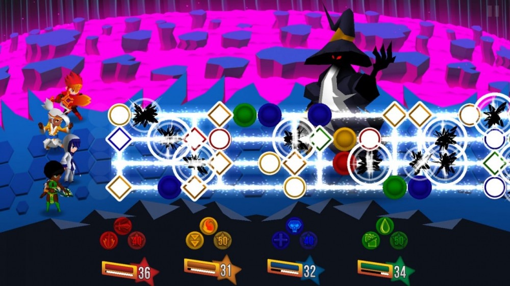 Dungeon Hearts внешне выглядит как ритм-игра, но на самом деле это смесь из головоломки и JRPG. Также тут есть случайная генерация битв и уровней. Присутствует несколько типов сложности и обучение. Разработчики взяли концепцию "три в ряд" и слегка переделали её.