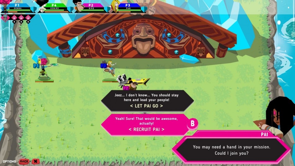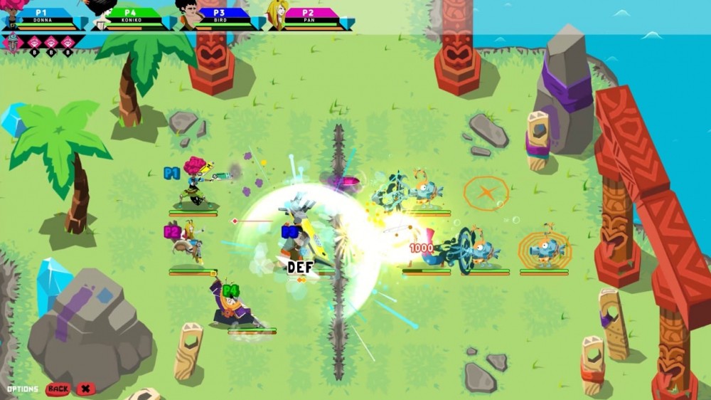 Побеждая боссов, команда получает артефакты и использует их в дальнейшем. Также игрок получит предмет в коллекцию Масок силы. Grid Fight имеет многопользовательский режим до 4 участников. Каждый юзер управляет определенными персонажами, а для победы предстоит координировать усилия и устраивать командные атаки. Когда герой применяет специальное умение, карта замирает и показывается анимация способности. Геймер настроит свою группировку при помощи добытой экипировки и прокачает подопечных, как только они повысят уровень.