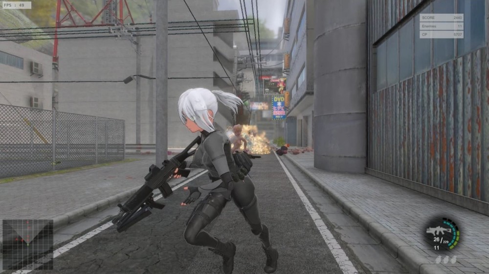 Красотка вооружена крупнокалиберным автоматом и пистолетом, что помогает уничтожать агрессивных монстров, что постоянно нападают. Также, в свободной игре, игроку доступна автоматическая турель, помогающая справится с напором противников. Кампания же включает в себя 10 этапов общей продолжительностью в пару часов.
