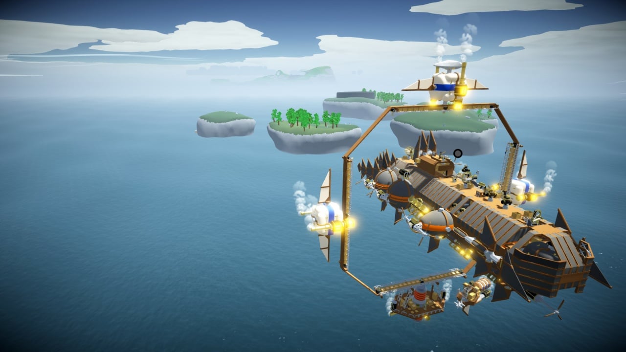 Чтобы отбиваться от захватчиков, необходимо позаботиться об оружии. На дирижабль можно устанавливать пушки и турели. В руки позволяется взять отбойный молоток или топор, что позволит не только использовать их в качестве добычи материала, но и давать отпор врагам. Любой компонент корабля, который можно соорудить, также позволяется и уничтожить.