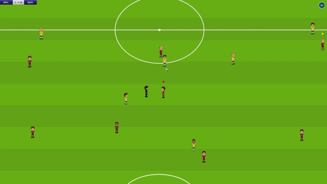 Название Pixel Soccer описывает суть игры. Это футбол с графикой в стиле пиксель-арт. Проект визуально и геймплейно стилизован под спортивные симуляторы с восьмибитных приставок. Камера здесь расположена сверху. Игровой процесс очень простой. Пользователь управляет только одним футболистом. Между ними можно переключаться. Они умеют бегать, пробивать по мячу, делать пас и совершать подкаты.