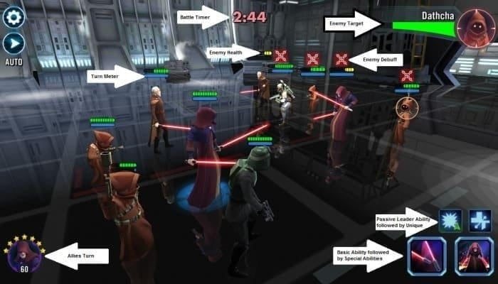 -Возможность собрать команду из полюбившихся героев на любой вкус и цвет – никто не помешает поставить в один отряд Дарт Мола и Люка Скайуокера и сойтись в схватке одновременно с Мэйсом Винду, Дарт Вейдером и принцессой Леей Органа. Комбинируйте героев из разных фракций и временных вселенных, чтобы ответить на извечный вопрос «а кто сильнее?».