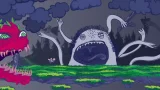 Escape Doodland представляет собой игру в нарисованном стиле, которая больше напоминает незатейливые детские рисунки. История начинается с того, что геймера знакомят с небольшим поселением Каракулево. Раньше оно процветало, пестря красками и разукрашенными чудиками, но сейчас его захватил огромный монстр Обжора. Это розовое чудовище с большим ртом преследует каждое существо в попытке его съесть. Именно от него на протяжении всей игры и придется убегать.