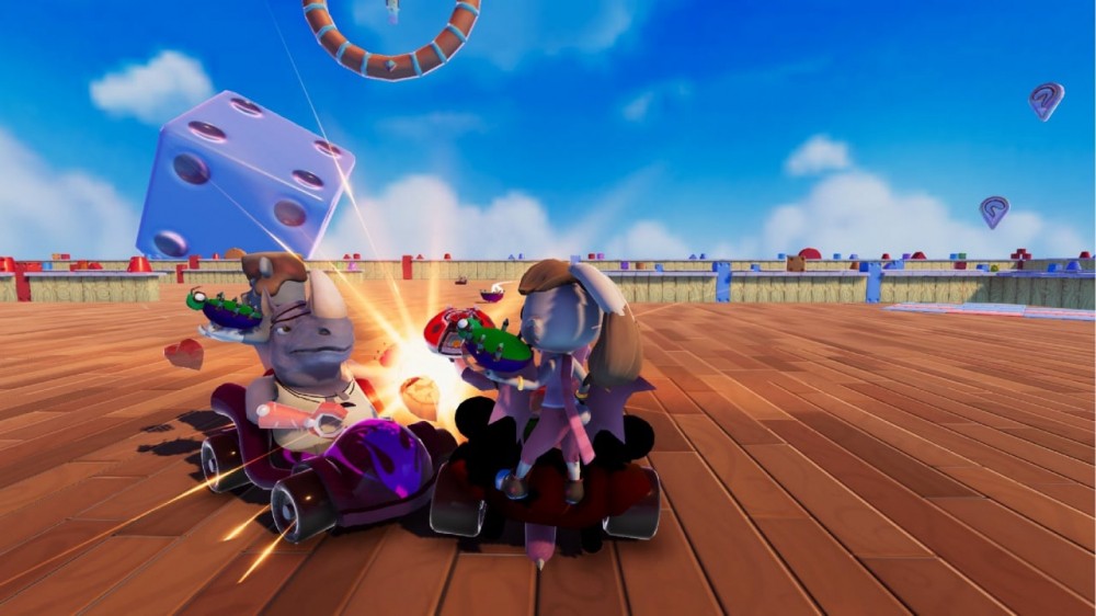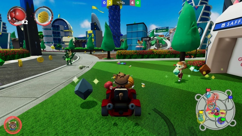 Передвигаться по уровням можно пешком, на автомобилях, самолетах или реактивных ранцах. В тайтле есть различные забавы, вроде бега с препятствиями, классических гонок, сражений на аренах. Герои могут подбирать оружие или вспомогательные вещи и брать по предмету в каждую руку. Также важно зарабатывать и собирать разбросанные повсюду кристаллы. Они необходимы для повышения рейтинга, от которого, в свою очередь, зависит доступность контента. После завершения матча игроки могут голосовать за выбор следующего типа соревнования или трассы.