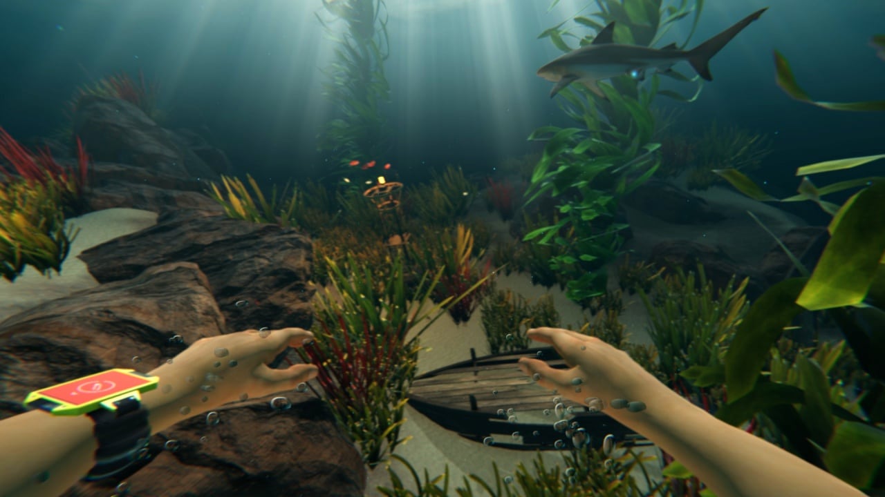 Вам предстоит добывать ресурсы непосредственно с видимого дна. С этого момента начинается хоррор часть игры. Например, вы окунетесь в мир, где косяки акул буду плавать перед вашими глазами, а вас они не тронут, если вы не дадите повода или движения.