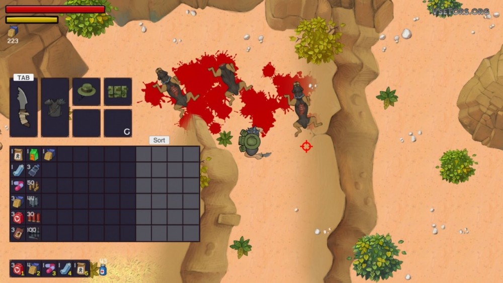 По мере продвижения геймер приобретает улучшенную экипировку. На старте предстоит воспользоваться оружием ближнего боя и надеть слабую броню. После появится возможность применить винтовки, пистолеты, револьверы, обрезы и другой огнестрел. Оружие используется в парном виде с щитом или ножами. Если ударить колющим предметом, то можно сделать эффект кровотечения у оппонентов. Атака битой с определенным шансом позволит оглушить противника. Применяя еду и лекарства, персонаж получает положительные эффекты и временные баффы.