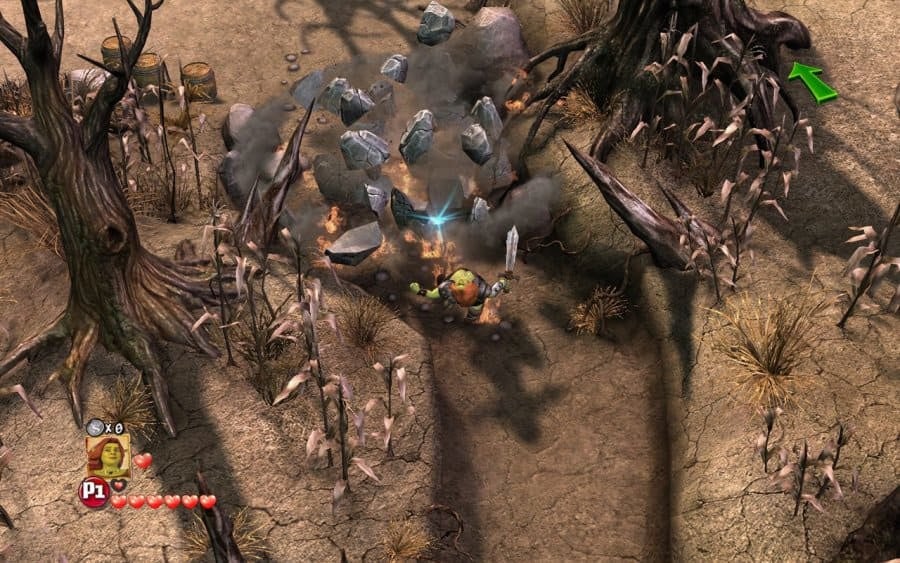 В любое время пользователь может поменять персонажа. Некоторые способности героев помогут пройти задачу. Враги – обычные люди, ненавидящие огров, они не понимают, что Шрек не желает им добра. Существует более 10 видов соперников, с которыми понадобится сразиться. Крестьяне с вилами, мечники, стража, обычные гражданские, конница, лучники и другие.