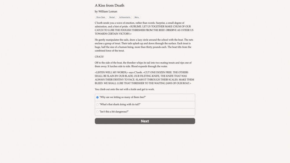Будучи могущественным персонажем, пользователь способен сжигать замки, сочинять стихи, соблазнять смертныъ и прекращать войны. По мере продвижения божественное существо открывает доступ к новым темным силам. В мире можно сделать всё, что только пожелает геймер. Геймплей представлен в виде текстового прохождения с 350 000 словами и множественными диалогами. Текстовые вывески взаимосвязаны между собой, повествуют о текущих события в мире или жизни протагониста. Сотни выборов позволят написать собственную историю.