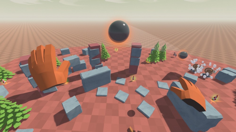 Игрок переносится в необычную виртуальную Вселенную, где ему предстоит сражаться с противниками в нестандартном формате. Здесь предложено сыграть одному пользователю, который проходит с применением устройства VR вместе с максимум четырьмя игроками одновременно, что проходят игру на персональном компьютере. Юзеру преложено принять участие в окончательной схватке между Давидом и Голиафом, где первый выступает в качестве могущественного героя-гиганта, что использует собственное лицо и руки, чтобы уклоняться от огня противника. Геймерам, которые играют на персональном компьютере, необходимо атаковать Гиганта, используя всевозможный взрывной арсенал. В мультиплеере предложено участвовать в локальных битвах, а также в онлайне, где можно создавать собственные карты в редакторе и делиться ими с сообществом.