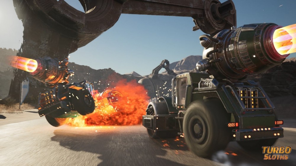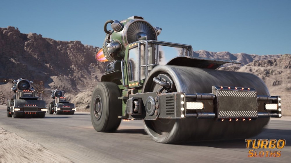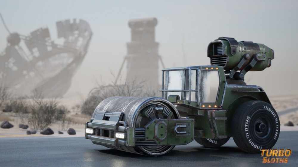 Заезды проводятся на многотонных асфальтоукладчиках. При этом каждый дорожный каток оснащен турбинами, что установлены на его кабине. В Turbo Sloths такие машины называются Туорбоджанками. Гонки проводятся на фоне постапокалиптичных пейзажей. Можно участвовать в чемпионате – Лиге Пустошей. Из одиночных режимов тут есть "Карьера" с сюжетом и сценками с диалогами, а также "Быстрая гонка". Ещё здесь позволяют кататься вдвоем за одним компьютером через разделенный экран.