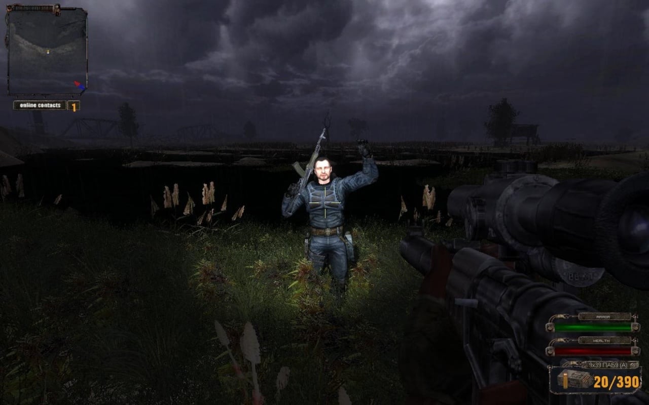 Сначала в Stalker перед геймером будет стоять выбор. Здесь можно осуществлять прохождение в составе одной из фракций - боевиков или за Чистое Небо. В последнем случае нужно дать бойцу ЧН аптечку и подойти к вояке. Убивать его нет необходимости - солдаты сами разберутся.