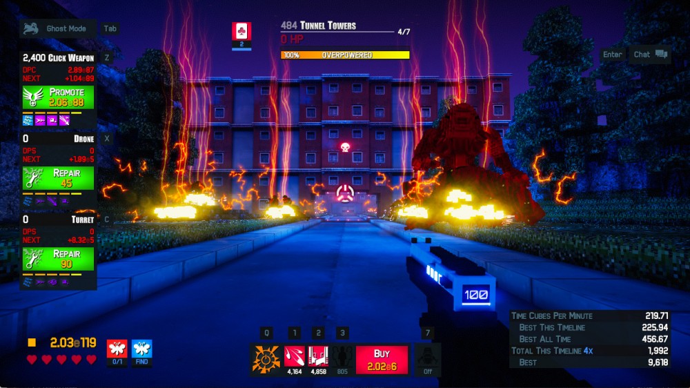При выборе локации необходимо задать 3 карты, определяющие бонусы героя. Всего представлено 13 карт с разными механиками и бустами. Сетевая игра позволяет соревноваться в команде, выступая в классических дезматчах Позволяется вызывать воздушный удар, подавляющий огонь и т.п. На уровнях присутствует ховербайк, позволяющий быстро перемещаться по локациям. Перки усиливают способности протагонистов, открывая навыки клик-оружия, поддержки дронов или развертывания турелей. Предстоит столкнуться с сильными боссами, против которых важно выработать индивидуальную тактику.