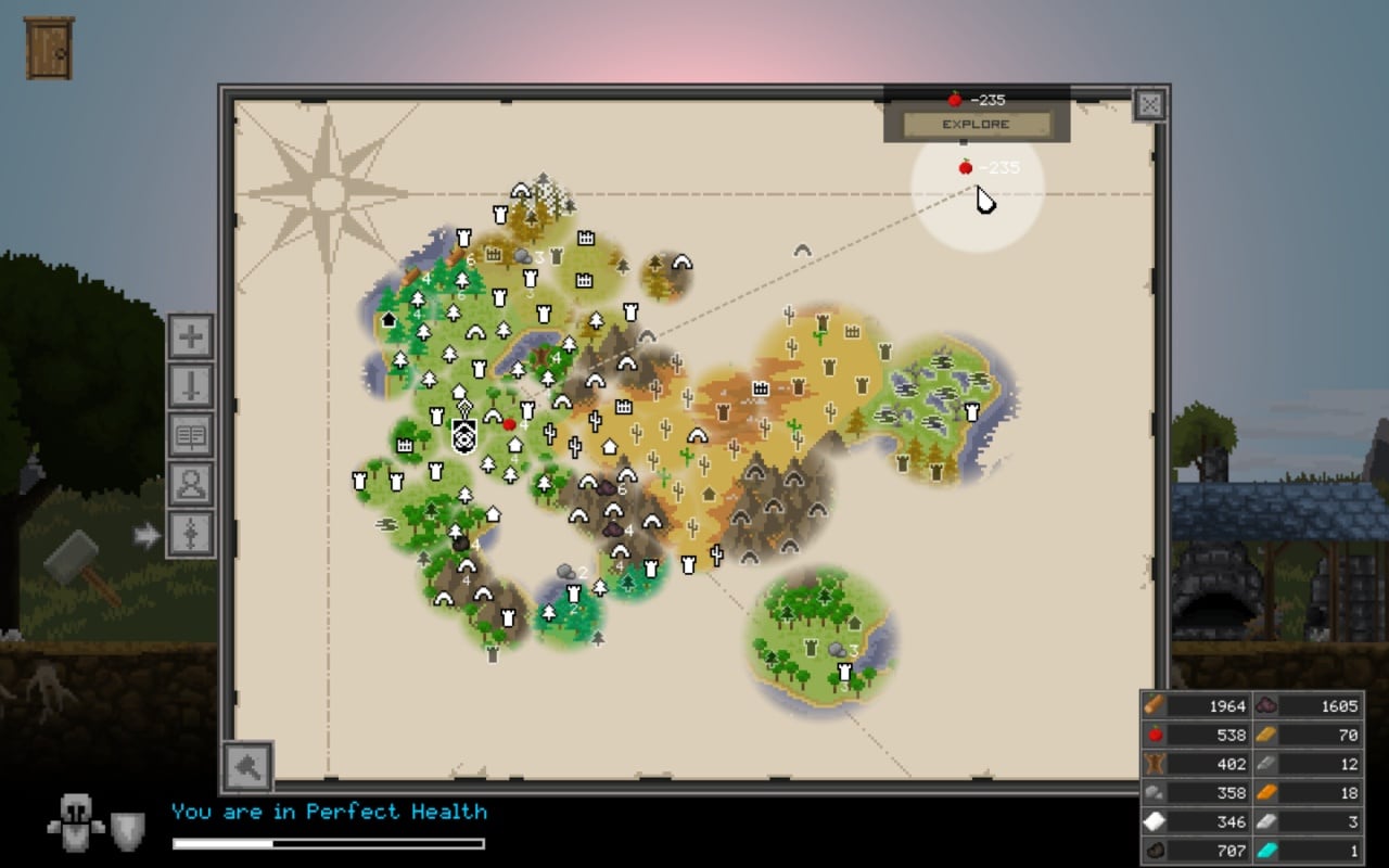 Условно игровой процесс делится на три основных элемента: исследование мира, боевая система и менеджмент своей деревни. Разведка новых территорий проходит автоматически и требует только одного ресурса - некоторого количества еды. Разнообразие локацией и событий на них действительно впечатляет. Мы то наткнёмся на стаю диких зверей, то найдём новый квест, то какой-нибудь тайник.