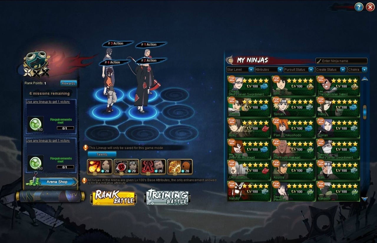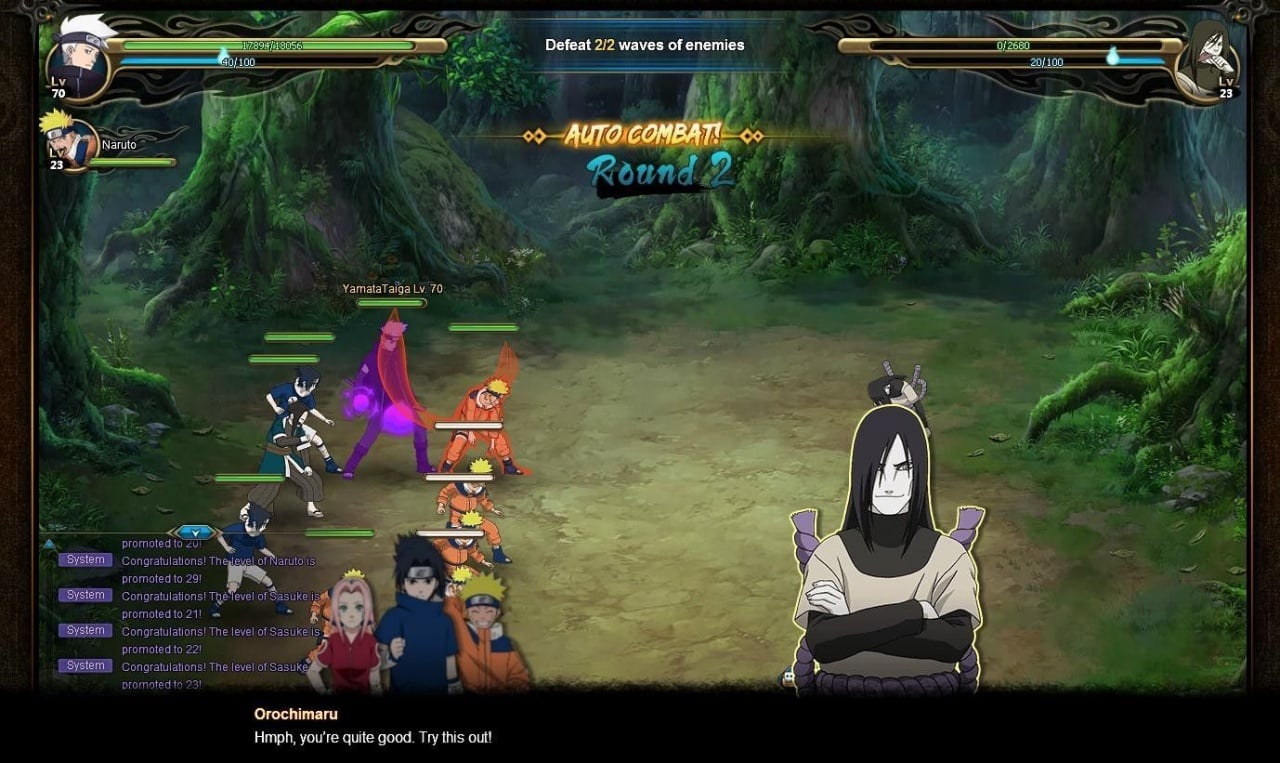 Начальная стадия сюжетной линии посвящена становлению виртуального протеже, знакомству с основными союзными персонажами, такими как Саскэ и Сакура, знакомству с Канохой и начальными тренировками на пути к званию величайшего ниндзя в истории. Поединки с противниками происходят в пошаговом формате, в котором игрок будет управлять своей группой, в неё могут входить до 9 человек одновременно. Каждого члена отряда нужно прокачивать отдельно для повышения общей эффективности. Все компаньоны обладают своими ежедневными заданиями, что дают различные приятные бонусы.