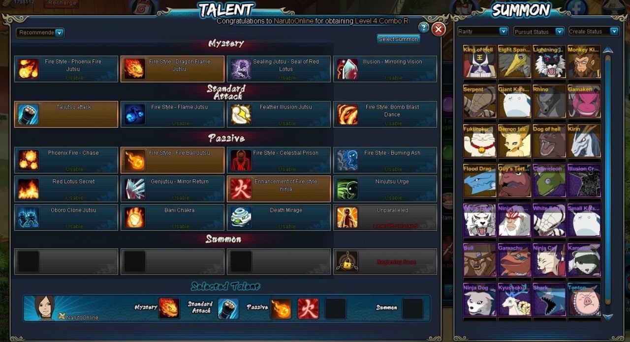 Каждый пользователь, попадающий в "Наруто Онлайн", выбирает своего протагониста из 5 представленных вариантов: Алое Пламя, Ночной Клинок, Синий Клык, Красный Кулак и Танцор Ветра. Каждый из них отличается от остальных не только внешним видом и полом, но и классом, от которого зависит набор способностей и сильные стороны, что нужно реализовывать во время сражений с многочисленными недругами разных уровней.