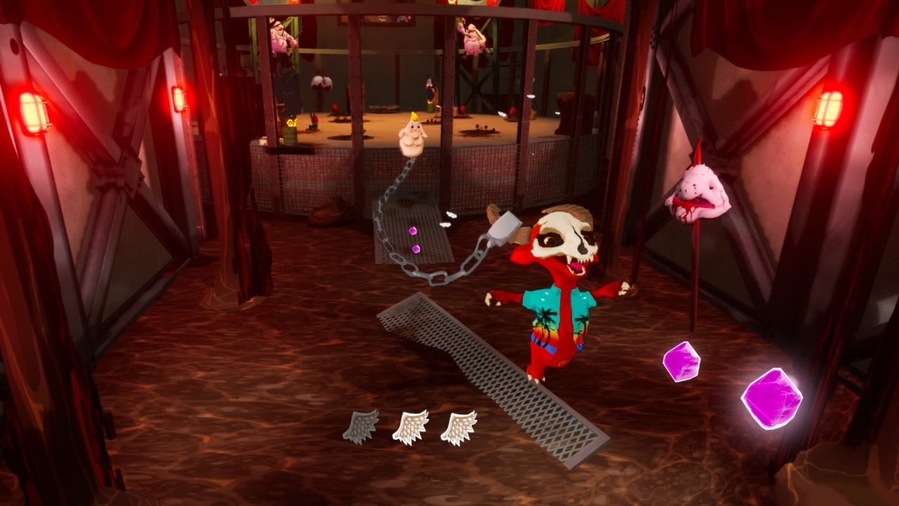 В арсенале демона есть пухлый голый ангел Nugget. Bowner держит его на цепи, чтобы использовать в своих целях. Пленник выполняет несколько разных функций: справочника, крюка и оружия. То есть, дает подсказки для прохождения труднодоступных участков, помогает преодолеть препятствия и победить врагов.
