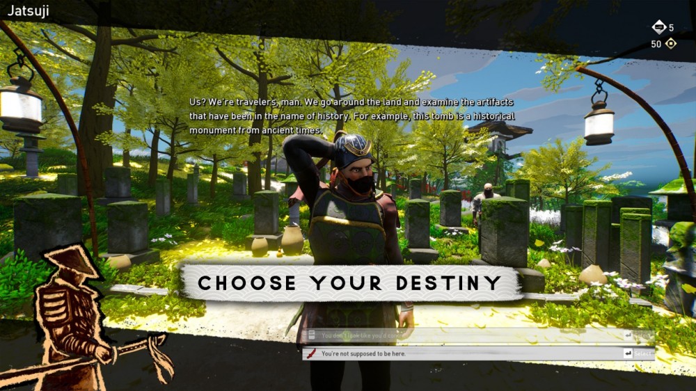 В первом случает предстоит просто изучать локации, искать секреты и общаться с героями. Вторая фаза приключение гораздо сложнее. Достав меч, протагонист переходит в боевой режим. Здесь очень важно вовремя контратаковать, уворачиваться, блокировать удары и запоминать тайминги противников. Всего-навсего один молниеносный выпад способен решить исход поединка. Не всегда оборона - лучшая тактика. Иногда если ударить первым, то можно сохранить себе жизнь.