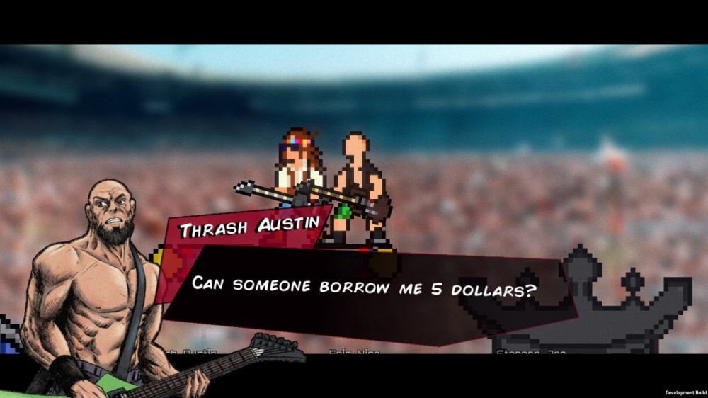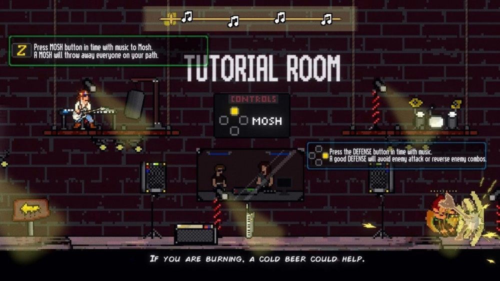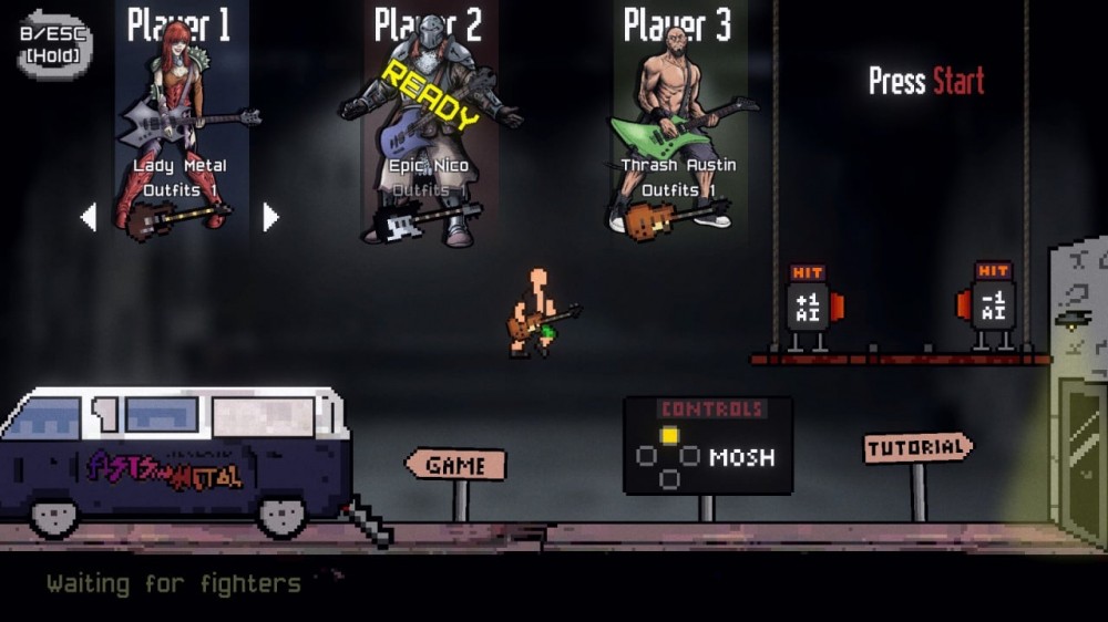 Для победы необходимо вытолкать всех соперников за пределы арены, как в Super Smash Bros. Можно использовать вспомогательные предметы для достижения цели. Каждая локация предоставляет уникальные бонусы. В качестве добивания тут применяется гитарное соло. Кроме обычных потасовок с компьютерными или живыми противниками есть сюжетный режим и кооператив.